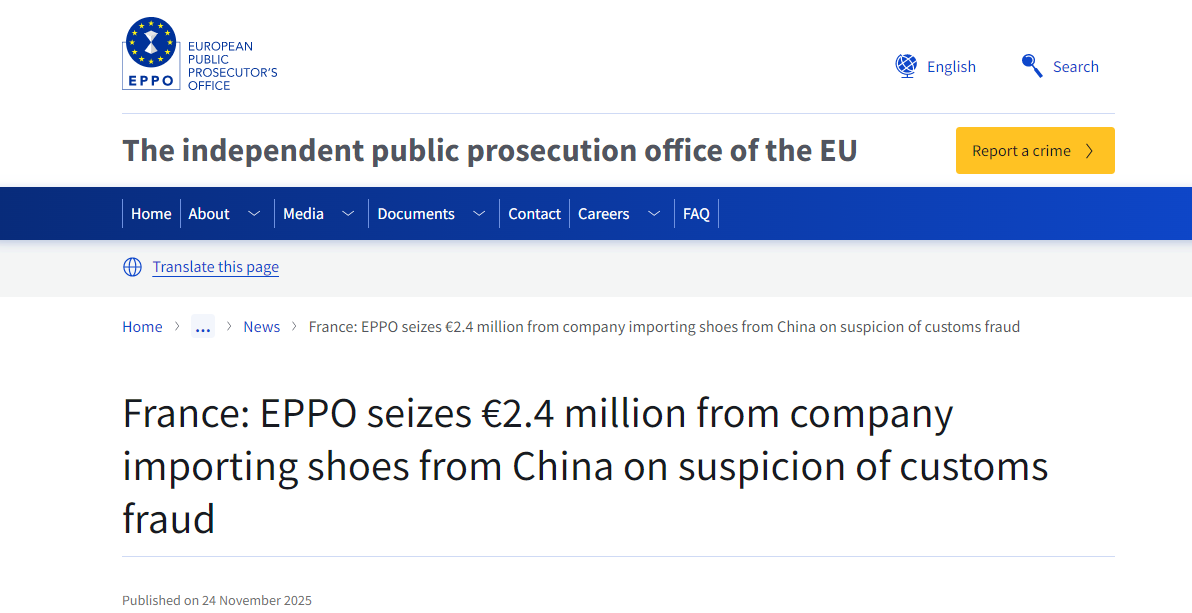 近日,欧洲公共检察官办公室(EPPO)在法国开展了一场大规模执法行动,成功查封了一家涉嫌海关欺诈的法国贸易公司及其关联企业,涉案金额高达2400万欧元。